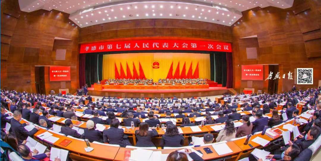 上午9時,吳海濤宣布孝感市第七屆人民代表大會第一次會議開幕全體起立,奏唱國歌.市長熊征宇向大會作政府工作報告。報告分三個部分:過去五年工作回顧、今后五年工作展望、2022年工作重點。